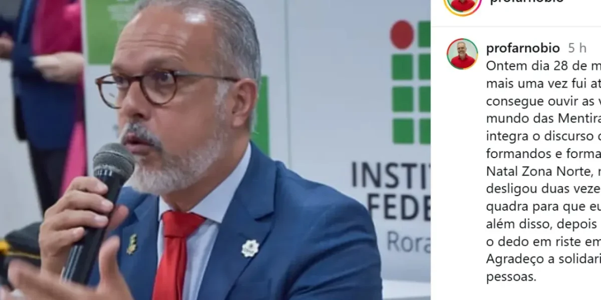 O reitor do Instituto Federal do Rio Grande do Norte (IFRN), José Arnóbio de Araújo Filho, foi alvo de vaias durante uma cerimônia de formatura no campus da Zona Norte de Natal, neste sábado (28). A reação partiu de parte do público, majoritariamente pais e familiares dos formandos, logo após o reitor citar e elogiar o presidente Luiz Inácio Lula da Silva em seu discurso.